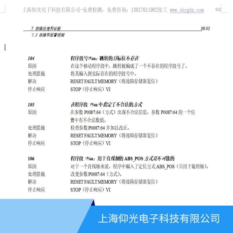 故障原因:對于 SET_O 或者 RESET_O 指令,在參數(shù) P0086:64(指令參數(shù))中輸入了不合法的數(shù)值。