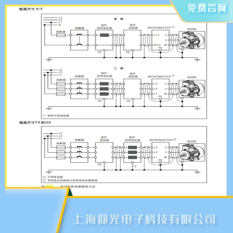 3. 框架尺寸為 A~F的 MM440變頻器只能采用 B型 ELCB。設(shè)備由三相電源供電,并裝有 EMC